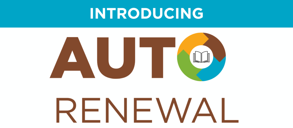 A: Check outs after July 1st, all items (excluding bestsellers and ILLs) that have not been renewed twice, and do not have holds, will automatically be renewed from the items’ previous due date. Note: Teacher Card items will not automatically renew since they don’t have the renewal option.