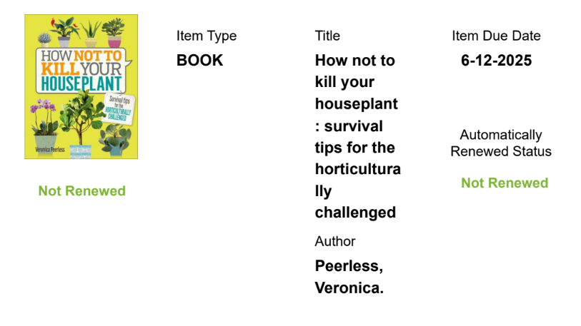 IMPORTANT: This will NOT be a retroactive change! It only affects items checked out after July 1, 2025.Anything checked out before July 1st will have to be renewed manually.